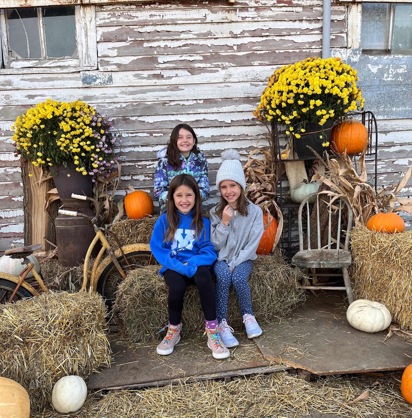 Norah until it was time for she and I to meet Lois, Camille, and Charlotte at Degler’s Farm for some fun fall activities. We started out with a photo but the twins were leary, aware that there could be wheat in the straw bales. We learned from the farmer that the bale they sat on was alfalfa which is gluten free. I sure feel bad for them having to deal with Celiac Disease but I’m proud that they are so knowledgeable and aware of their need to avoid contact with wheat in order to stay healthy.